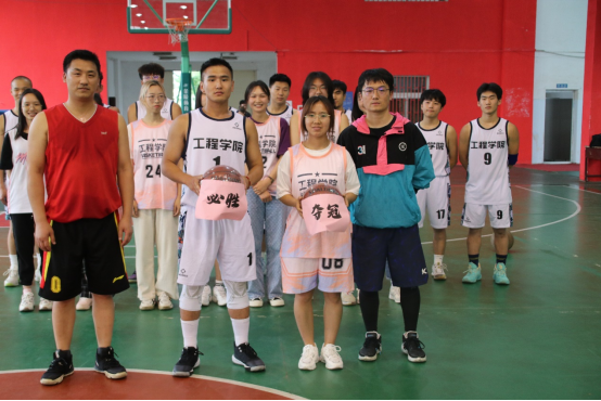 校团委挂职副书记、安全系教工党支部书记、工程教工篮球队队长周克清为篮球队授旗,新校区建设指挥部副处长、威尼斯432888cam2004级土木工程毕业生陈胜和威尼斯432888cam工岩系博后郑罗斌为男队和女队颁球。