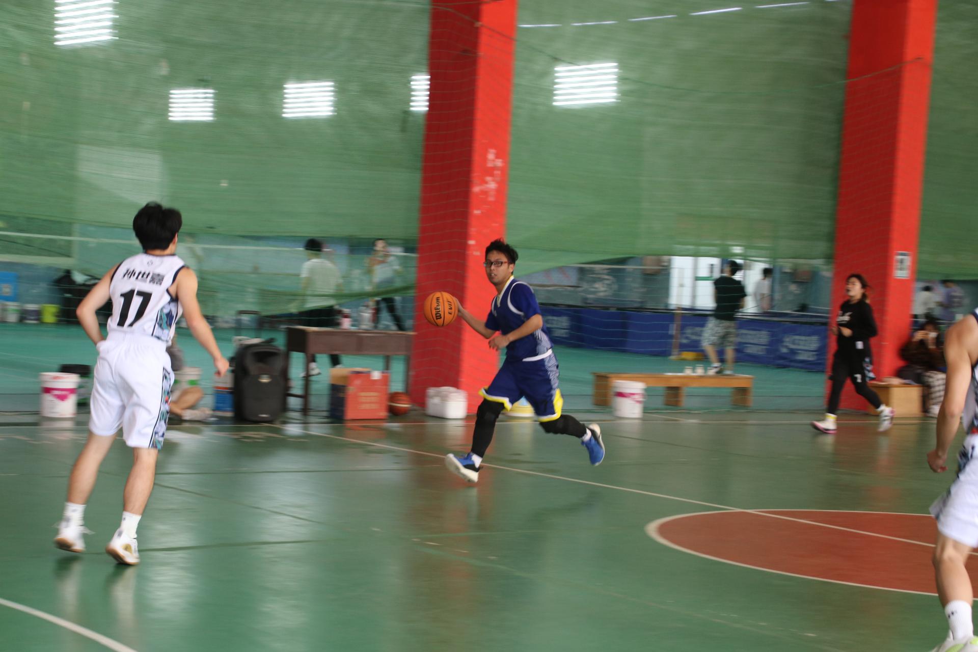 最后,师生篮球赛正式开始。主持人介绍首发队员,他们分别是教师队的陈胜、郑罗斌、高晓东、程旬和张伟,学生队的杨明、代钊恺、阿依巴特、王俊超以及熊秋阳。随即,双方进行了紧张激烈的角逐,最终学生篮球队以70:68的比分获胜。